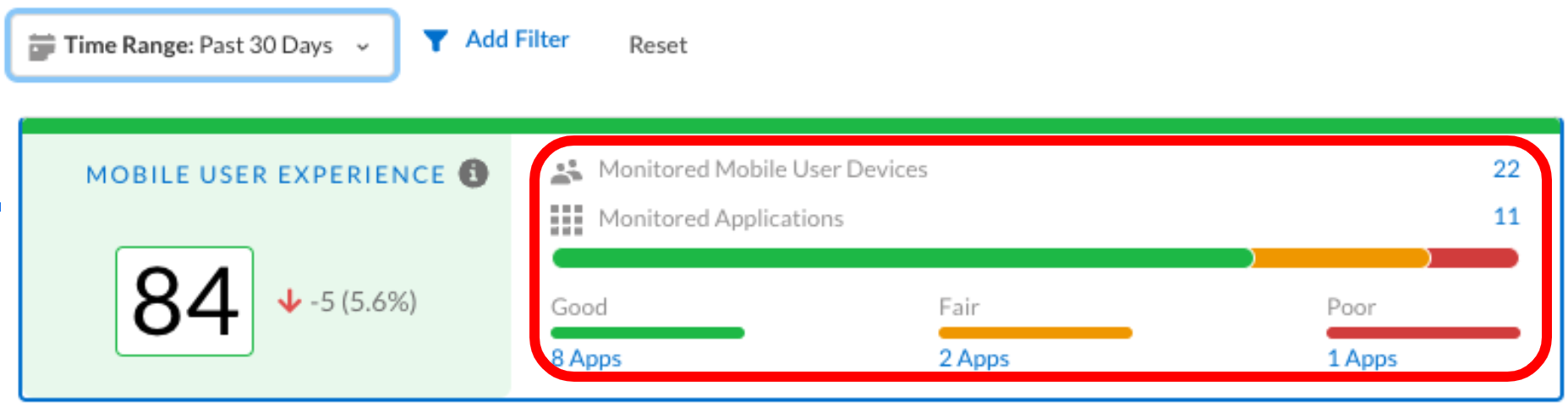 This API retrieves the experience score distribution (Good, Fair, Poor) across all monitored Mobile User devices.